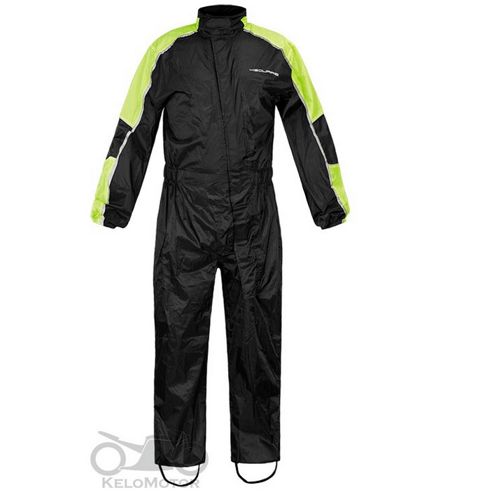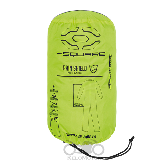 4Square Safety vízálló egyrészes motoros esőruha láthatósági sárga csíkokkal.