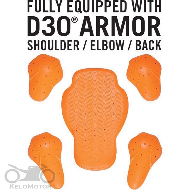 Az Icon Airform retro motoros dzseki könnyű de tartós 420D megerősített poliészterből készült, laza szabással, amely D3O® protektorok teljes választékával fel van szerelve (váll, könyök, hát).