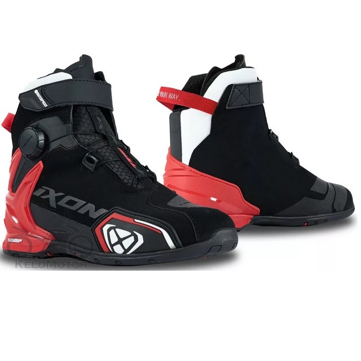 –ez a sportos motoros cipő csúcstechnológiás részleteinek köszönhetően az egyik legkelendőbb az Ixon kollekcióban. Lábujjerősítései, keresztmetszeti merevsége és bokapántja maximális tartást és kiváló védelmet garantál esés esetén. A Bull 2 WP motoros cipők párnázott sarokvédővel és talpbetéttel vannak felszerelve a maximális kényelem érdekében.