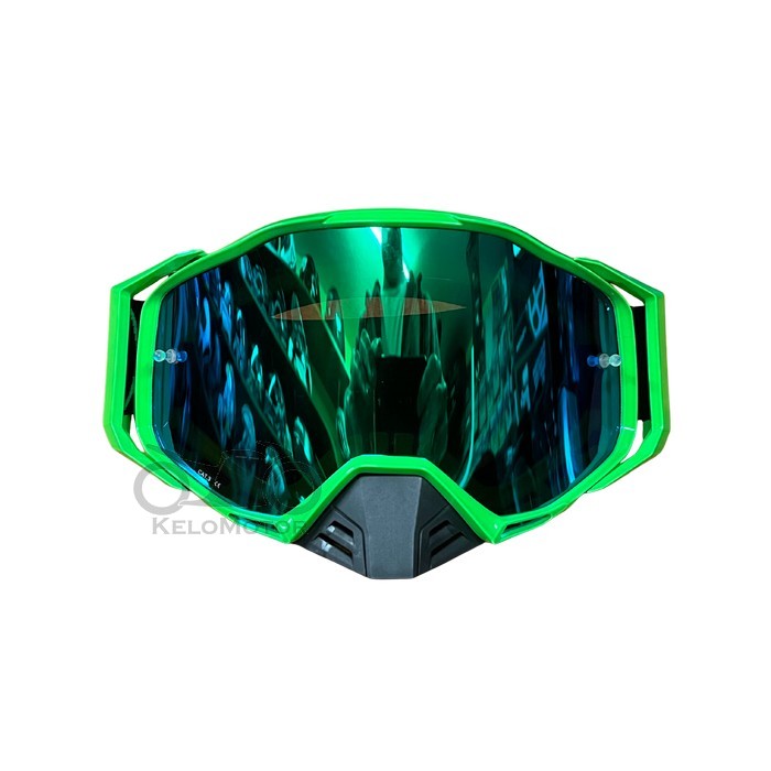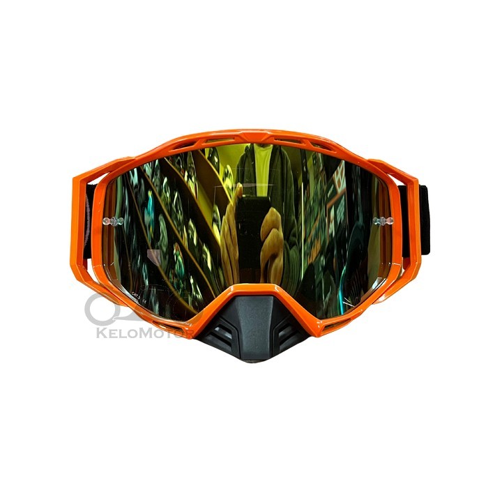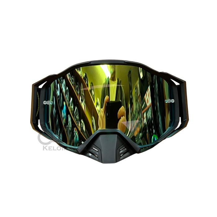 Motoros cross szemüveg Nox Predator, tükrös színezett karcálló polikarbonát lencse, 40 mm széles extra pánt belül vastag szilikon csíkkal, nagy látómező, kényelmes illeszkedés bármilyen cross bukósisakhoz.